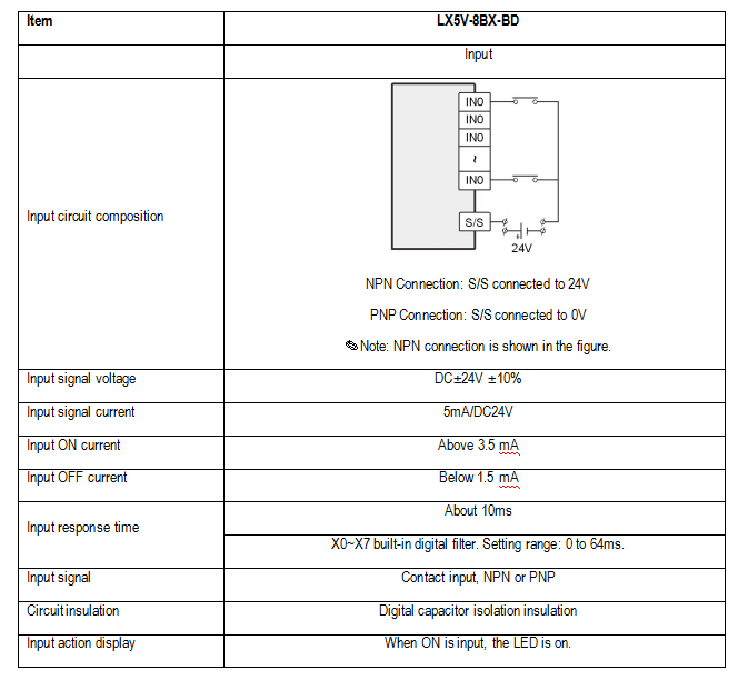 The LX5V-8BX-BD is an 8-channel analog input module designed for digital input (DI) applications. It provides 8 analog input channels with reliable data acquisition for systems requiring high-performance input handling.